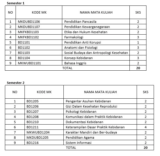 STRUKTUR MATA KULIAH PROGRAM STUDI D3 KEBIDANAN